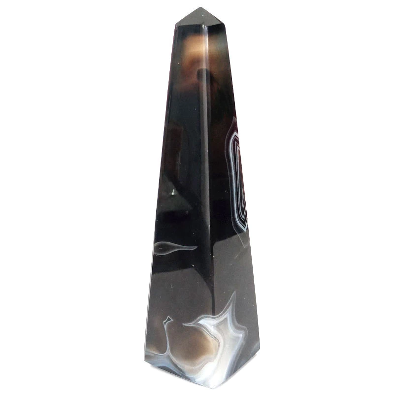 Pedra lapidada de Ágata negra, em formato de Obelisco.