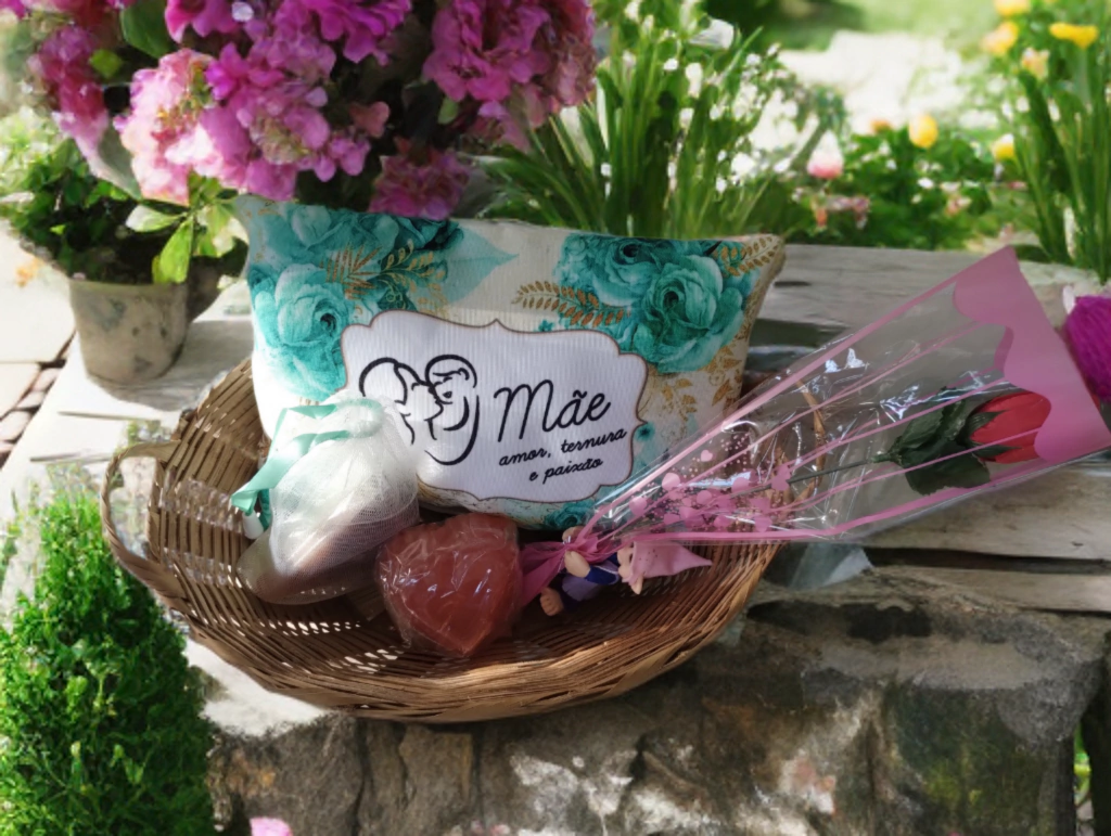 Temos presentes para todas as mães, então é claro que mãe que ama o mundo místico não poderia ficar de fora! Neste kit acompanha: 1 almofada personalizada com o tema dia das mães, 1 mini duende, 1 rosa vermelha, 1 sabonete artesanal natural de limpeza, purificação, revitalização e quebras em formato de pirâmide, 1 sabonete artesanal natural de prosperidade, riqueza, abundância e felicidade em formato de pirâmide, 1 sabonete artesanal natural de amor, autoconfiança, felicidade e autoestima. Dê carinho, cuidado, muita prosperidade, amor e felicidade para a sua mãe.