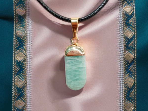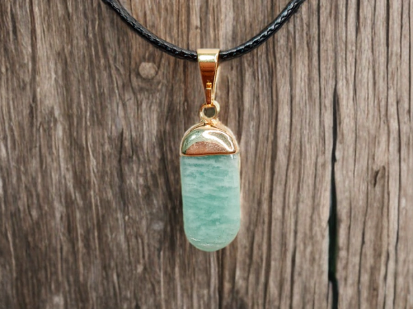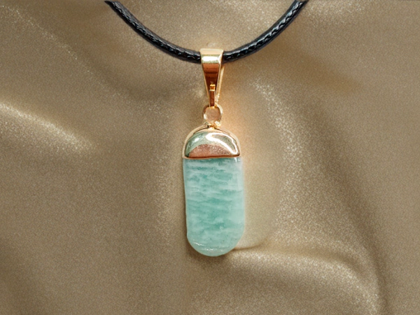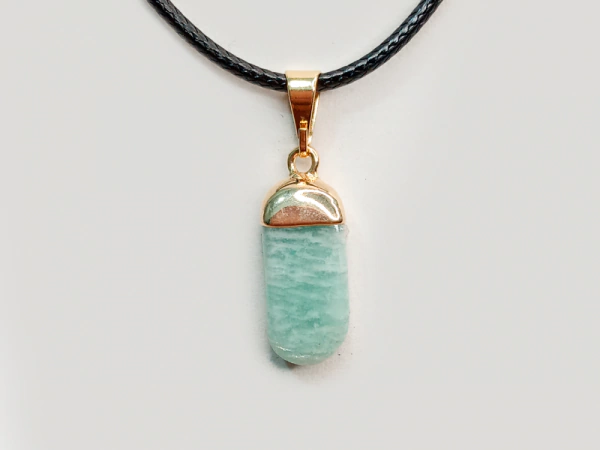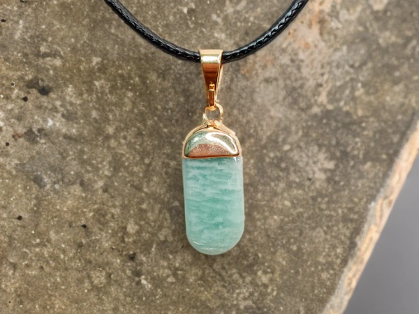 Colar com pingente em pedra natural rolada de Amazonita, com banho dourado.