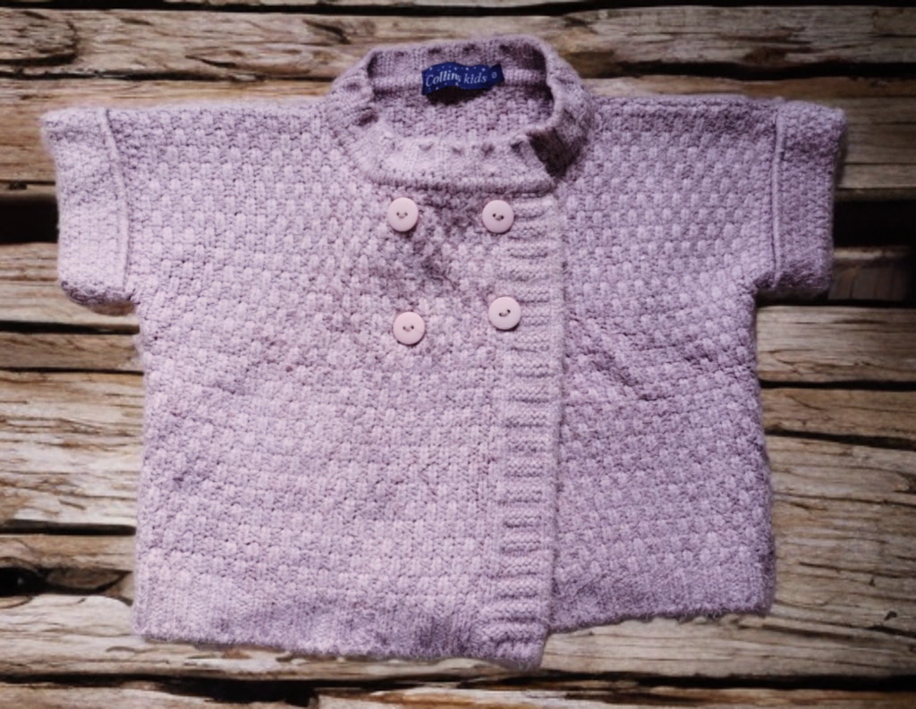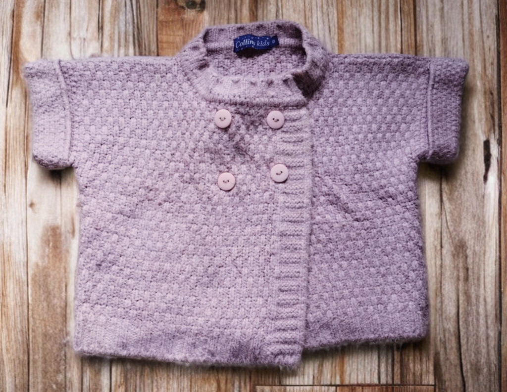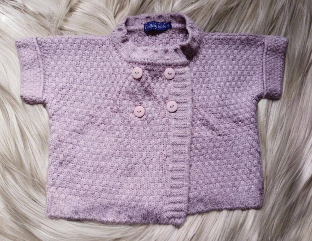 É um colete bem grosso e quentinho, de lã, com botões para usar aberto ou fechado, tamanho 8, marca Collins Kids, usado mas bem conservado, tecido bem gostoso e confortável. Cor: rosa bem clarinho.