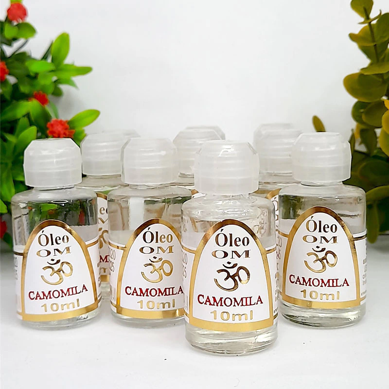 Frasco de vidro, contendo 10 ml de óleo aromático essência de Camomila.