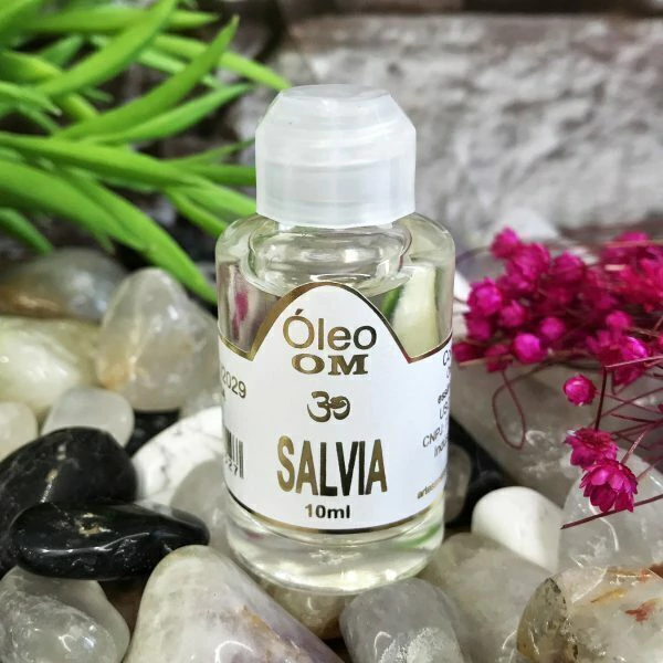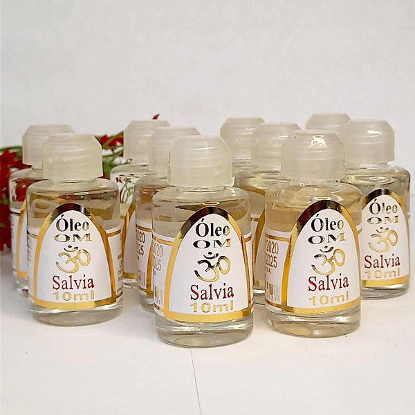 Frasco de vidro, contendo 10 ml de Essência Aromática de Sálvia.