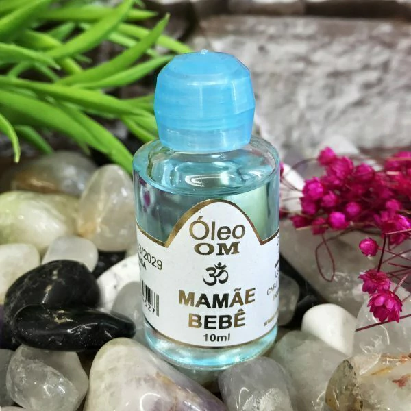 Frasco de vidro, contendo 10 ml de Essência Aromática Mamãe e Bebê.