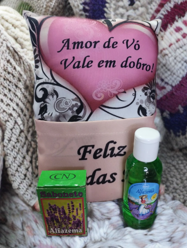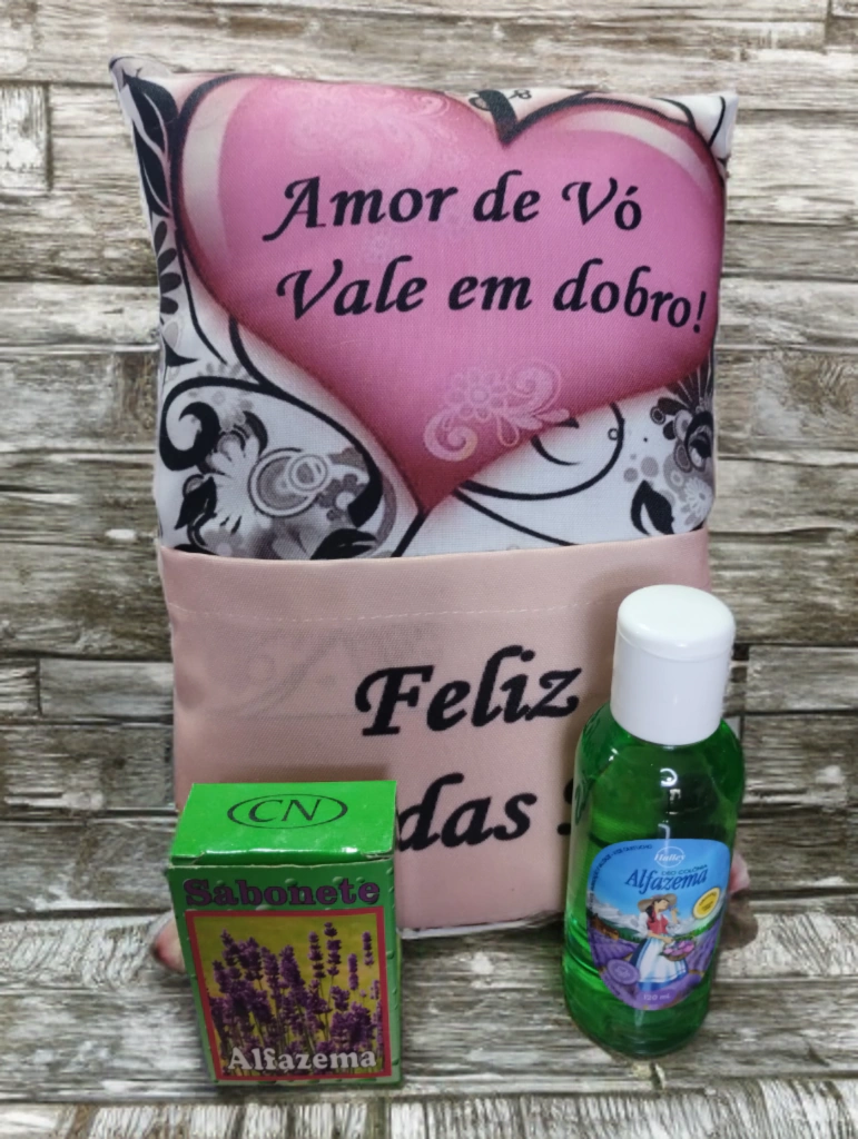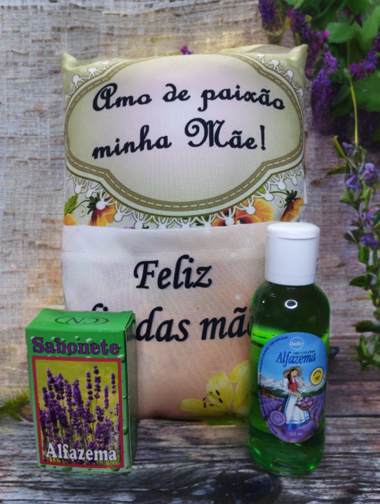 Neste kit acompanha 1 almofada com bolso personalizada Dia das Mães, 1 deo colônia Halley tradicional e original de Alfazema 120ml, 1 sabonete em barra CN de alfazema 50g e tudo já vai pronto para dar de presente.