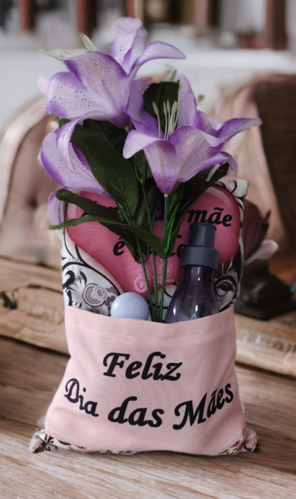 Sabe aquela mamãe que ama se cuidar e perfumar, mas por estar grávida ou com um bebê não consegue usar perfumes porque fica enjoada ou não é bom para o bebê, aí fica chateada por não poder mais usar perfumes? Esse presente é a solução para ela, pois o body splash de algodão é suave e é uma fragrância que não enjoa e nem faz mal, então ela pode usar. Então o kit vai como um presente para ela e junto um mimo para o bebê que a deixará mais feliz ainda. Para deixar o presente ainda mais bonito, especial e com cara de "dia das mães", adicionamos uma almofada personalizada com o tema de dia das mães com bolso que vai com o kit dentro, e 1 buquê de lírios lidíssimo!