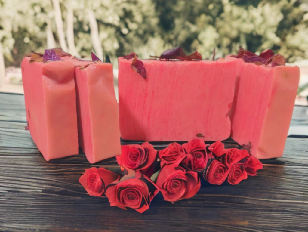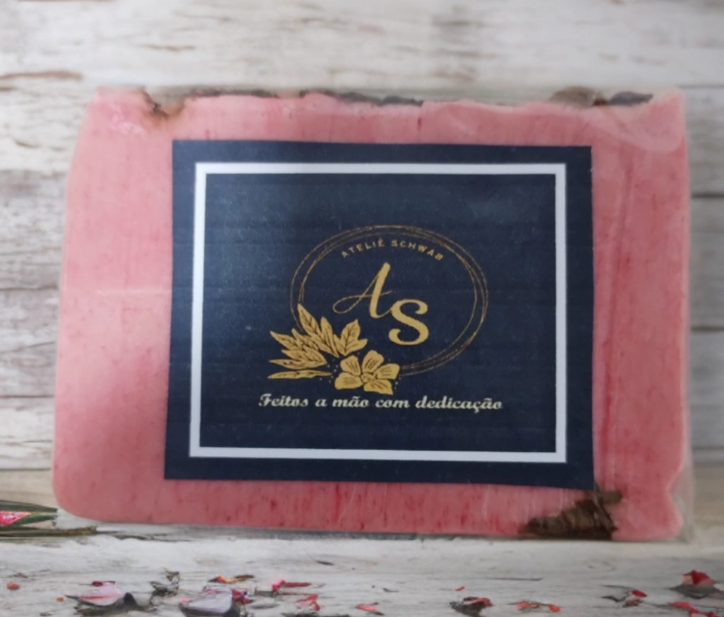 Sabonete de Rosas Vermelhas, produzido artesanalmente com todo carinho, cuidado e dedicação! Por isso, leva, no mínimo, 3 dias para ficarem prontos: 1 dia para preparo e desenformar após 6 horas de colocado na forma; 1 dia para fatiar e esperar secar (24 horas de secagem); 1 dia para embalar e etiquetar.