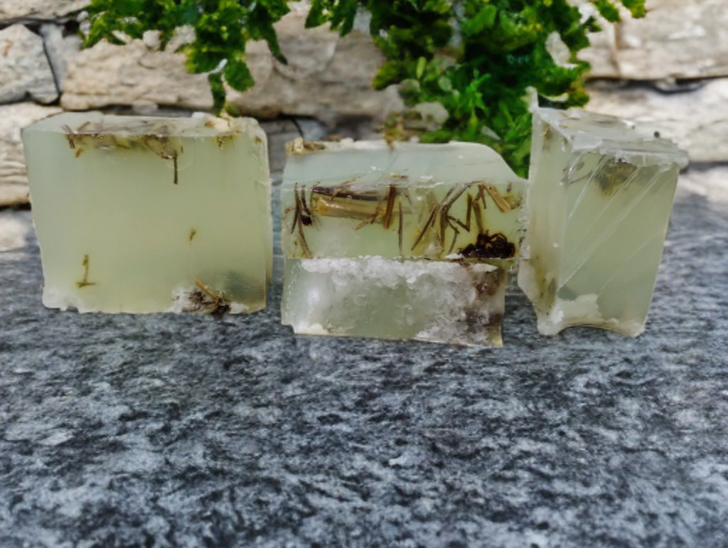 Além disso, têm efeitos na sua pele de hidratação. maciez, clareza, regeneração celular, cicatrização, trata acne, anti-inflamatório, antimicrobiano e brilho; e trata líquen palno, herpes e ajuda na produção de colágeno já que adicionamos gel de babosa na composição desse sabonete. Com a ajuda do alecrim melhora a circulação, promove o rejuvenescimento, auxilia na remoção de toxinas e a clarear a pele.