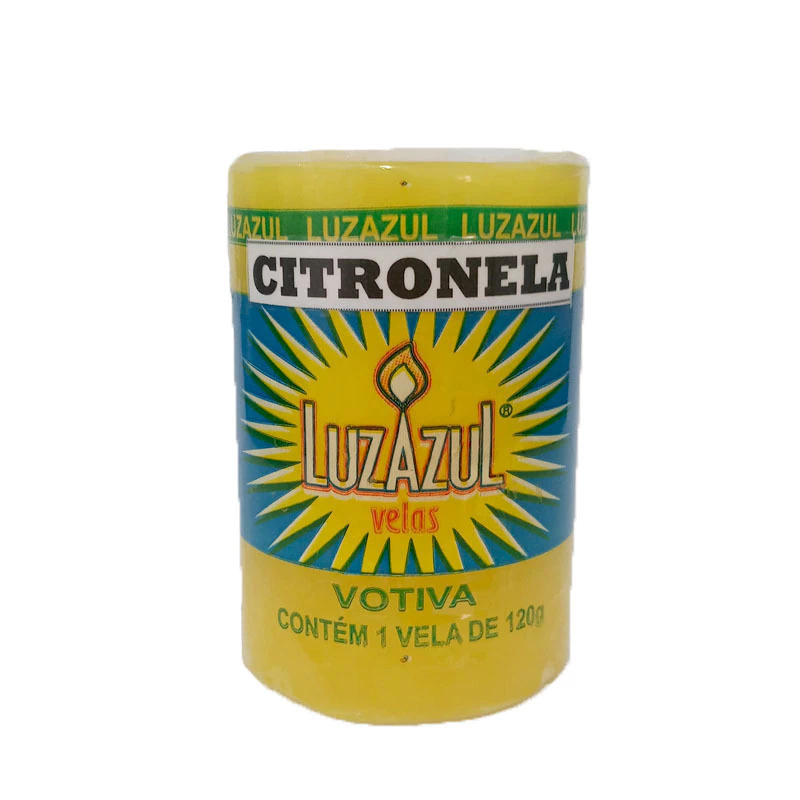 Vela com óleo de citronela, com duração média de três dias sem apagar.